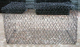 Cage de 2x1x1 m en maille à triple torsion, hexagonale, de 50x70 mm, en fil de fer galvanisé de 2 mm de diamètre, pour gabion. |
