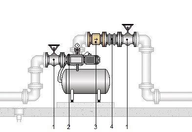 Surpresseur domestique, pour distribution d'eau en aspiration avec charge, constitué de: électropompe centrifuge monocellulaire horizontal de fonte de fer, d'une puissance de 1,1 kW, pour une pression maximale de travail de 8 bar, température maximale du liquide conduit 35°C selon NF EN 60335-2-41, corps d'impulsion de fonte de fer, axe moteur d'AISI 303, impulseur de laiton, support de fonte de fer, fermeture mécanique de charbon/céramique/NBR, moteur asynchrone à 2 pôles et ventilation forcée, isolation classe F, protection IP44, pour alimentation monophasée à 230 V à 230 V et 50 Hz de fréquence, condensateur et protection thermo-ampèremétrique à réarmement automatique incorporés, avec réservoir accumulateur d'acier inoxydable sphérique de 24 l, avec membrane échangeable, pressostat, manomètre et raccord de plusieurs voies, et câble électrique de connexion avec prise de type shuko. Comprend les tubes entre les différents éléments et accessoires. Totalement monté, connecté et mis en marche par l'entreprise installatrice pour la vérification de son bon fonctionnement. Ne comprend pas l'installation électrique. | ||