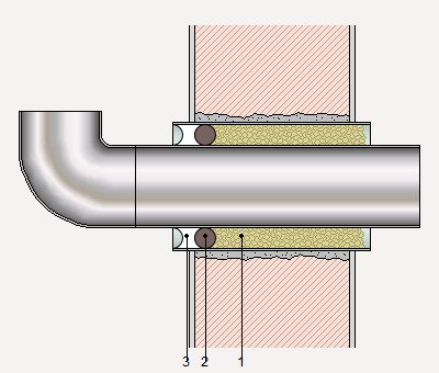Scellement imperméabilisant extérieur du joint périphérique de 15 mm de largeur, entre une traversée de paroi en PVC de 90 mm de diamètre et le conduit d'installations introduit à l'intérieur, avec mastic monocomposant à base de polyuréthane, sur fond de joints pour scellement dans des cordons en polyéthylène expansé, de 20 mm de diamètre, placé à une profondeur d'au moins de 2 cm depuis le bord extérieur de la traversée de paroi laquelle sera fixée au préalable, avec du mortier de ciment hydrofuge, à l'intérieur d'une ouverture réalisée dans le mur de façade allant jusqu'à 40 cm d'épaisseur, et une injection postérieure de mousse de polyuréthane depuis la partie intérieure vers le fond du joint.