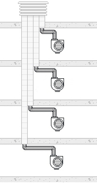Hotte aspirante conventionnelle avec 1 moteur d'aspiration, avec tronçon de connexion de tube flexible en aluminium à conduit d'extraction pour sortie des fumées. Comprend les éléments de fixation. | ||