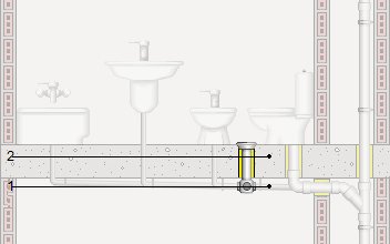 Tabouret siphoïde en PVC, de 110 mm de diamètre, avec couvercle plein en acier inoxydable, placé superficiellement sous le plancher.