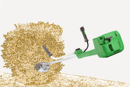 Débroussailleuse équipée d'un disque à dents de scie ou d'un fil de coupe, de 0,42 kW de puissance.