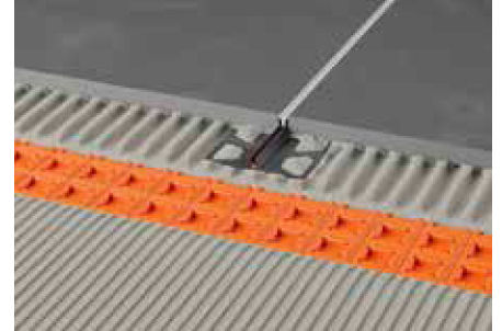 Profilé en T pour joints de partage dans des revêtements céramiques, en PVC, Schlüter-DILEX-FCS 90 "SCHLÜTER-SYSTEMS", de 9 mm de hauteur et 3,5 mm de largeur, avec ailes avec perforations trapézoïdales pour sa fixation et recouvert en CPE, avec joint d'absorption de mouvements en silicone pour profilé, Schlüter-DILEX-FIS 300 BW "SCHLÜTER-SYSTEMS", de 3,5 mm de largeur, couleur blanche RAL 9010 finition brillante.