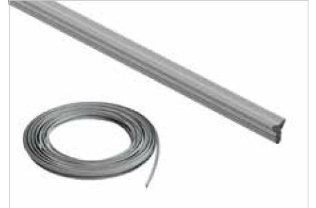 Profilé en T pour joints de partage dans des revêtements céramiques, en PVC, Schlüter-DILEX-FCS 90 "SCHLÜTER-SYSTEMS", de 9 mm de hauteur et 3,5 mm de largeur, avec ailes avec perforations trapézoïdales pour sa fixation et recouvert en CPE, fourni en barres de 2,5 m de longueur.